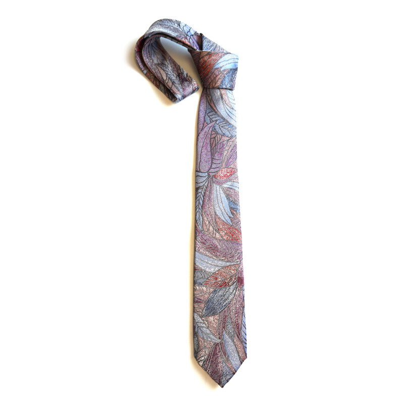 Krawatte "Shiny Leaves" in grau-rosa