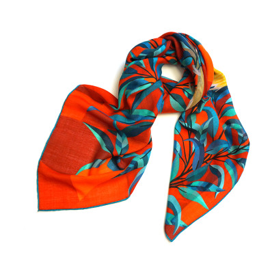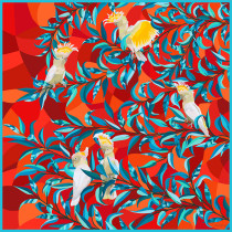Grand Foulard "Kakadu" in rot-türkis