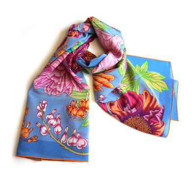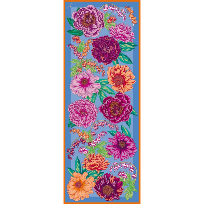 Scarf "Peonies" in light blue
