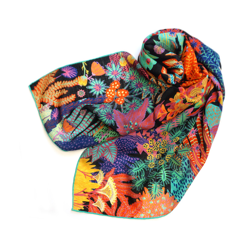 Grand Foulard "Toucana" in black-rainbow
